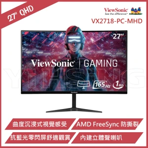 ViewSonic 優派 VX2718-2KPC-MHD 27型 VA 2K 180Hz 曲面電競螢幕(1500R/內建喇叭//FreeSync/1ms)
