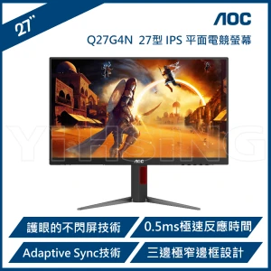 AOC 艾德蒙 180Hz 平面電競螢幕 Q27G4N (27型/2K/HDR/180Hz/0.5ms/VA)
