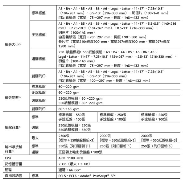 | 規格 | DP3205d, DP3205d+第二紙匣 |