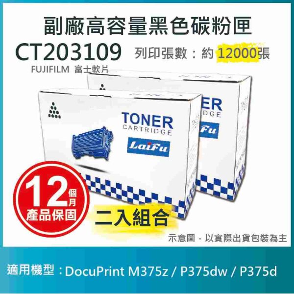 【LAIFU耗材買十送一】富士軟片 FUJIFILM CT203109 相容高容量碳粉匣 適用DocuPrint M375z / P375dw / P375d 【兩入優惠組】