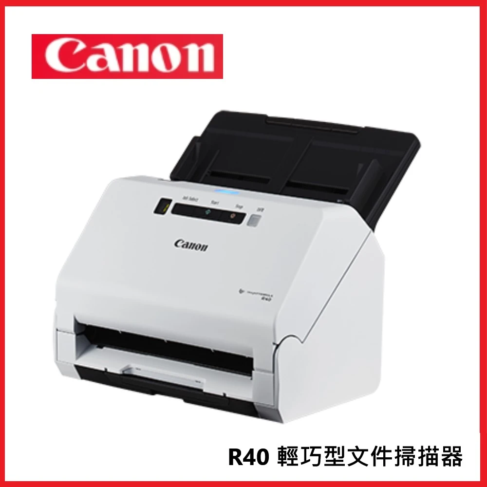 Canon imageFORMULA R40 文件掃描器具備安裝簡易性和使用便利性,讓您能提升在家或在辦公室工作的生產 力。只需使用功能強大的Canon 專用掃描軟體,即可迅速地將許多類型的紙本文件轉換成可搜尋的數位文件檔案。