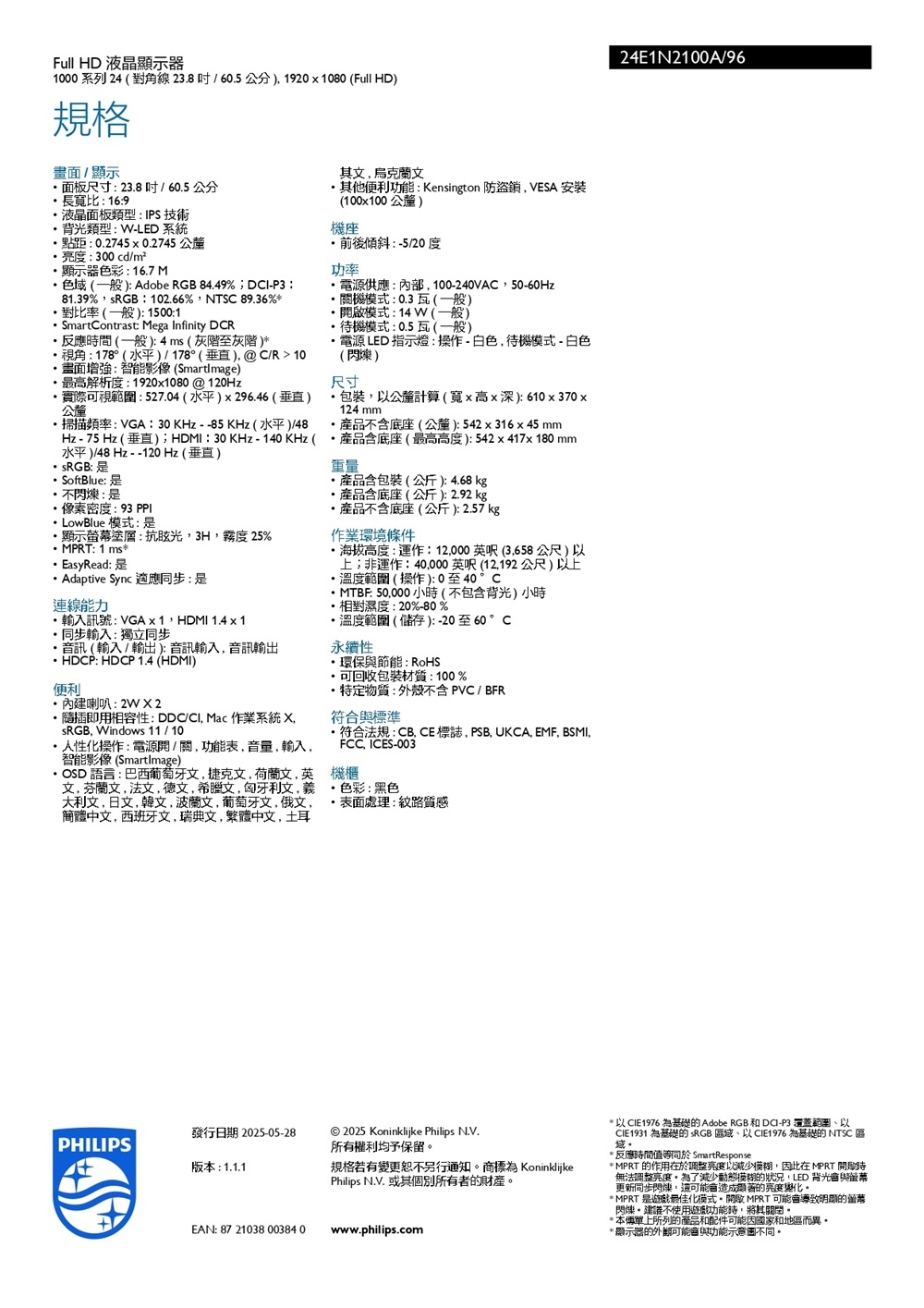 規格 | 221V8A — 內建喇叭, 221V8 — 無內建喇叭 |