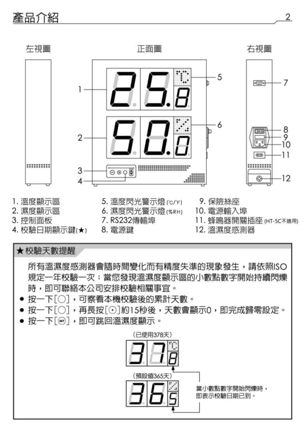 HT5D (大螢幕) 防潮箱溫濕度檢測記錄器 溫濕度顯示器