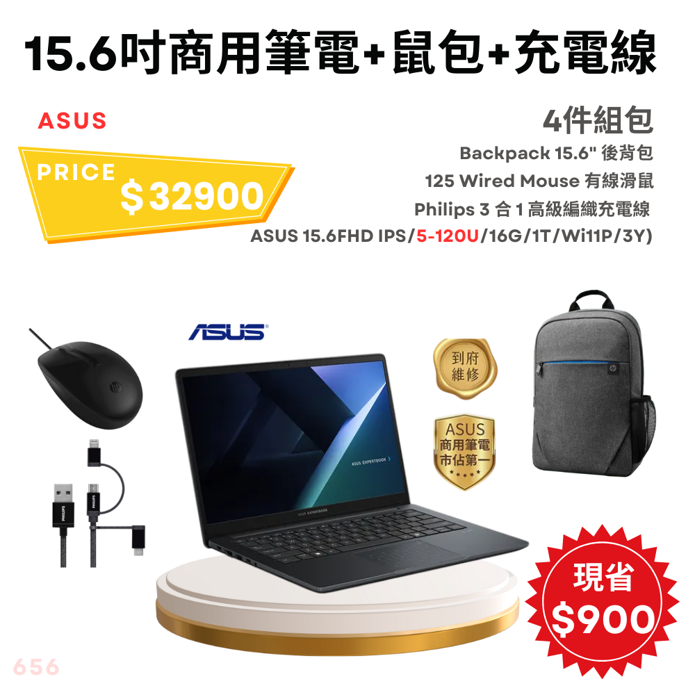 ASUS 華碩 Expert Book 系列 筆電 B1503CVA 15.6FHD IPS/5-120U/16G/1T/W11P/3Y 商用筆電