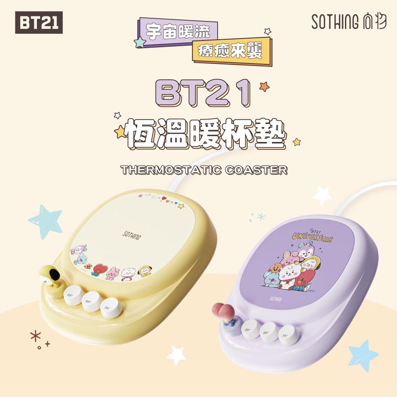可替換式造型公仔按鈕設計,隨心情自由替換使用 雙核PTC搭配金屬面板,加熱速度比普通恆溫杯墊快60% 55-75度溫度可調,滿足各種狀態需求 相比普通恆溫杯墊,加熱面積增加50% 無聲加熱不打擾,零噪音更舒適 升溫快速,達溫度後即為恆溫 智能芯控技術,開機八小時後自動關機 內置防水軟矽膠,有效防止液體滲入 25W小功率不跳電,任何場景放心使用 1.5m長度電源線,使用不受限 防滑腳墊站得更穩,使用不移動更安全 品牌名稱:SOTHING 向物 產品名稱:BT21恆溫暖杯墊 產品款式:黃色-暖呼呼(附可替換造型公仔按鈕SHOOKY、CHIMMY、MANG、COOKY) 紫色-疊疊樂(附可替換造型公仔按鈕TATA、RJ、KOYA) 產品型號:DSHJ-S-2206A 產品尺寸:170 x 135 x 34 mm 產品顏色:紫色、黃色 額定頻率:60Hz 額定電壓:110V 額定功率:25W BSMI:R45673 【包裝清單】 主機 x1、說明書 x1 【保固】 台灣保固:12個月 以上規格依原廠提供資料為準,實際以出貨商品為準。![]()