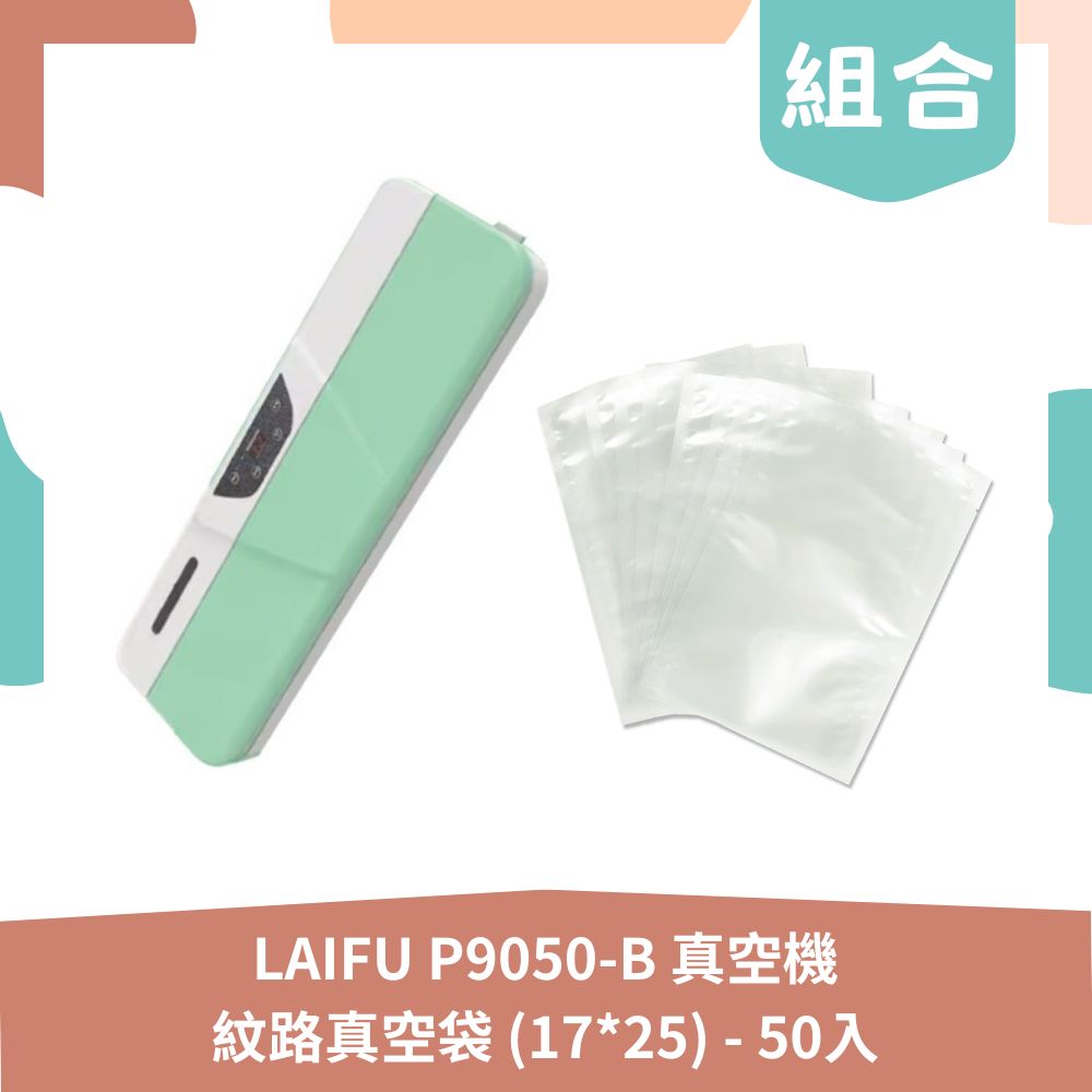 【廚房組合包】LAIFU P9050-B 廚房真空機封口機+紋路真空袋 (17*25) – 50入