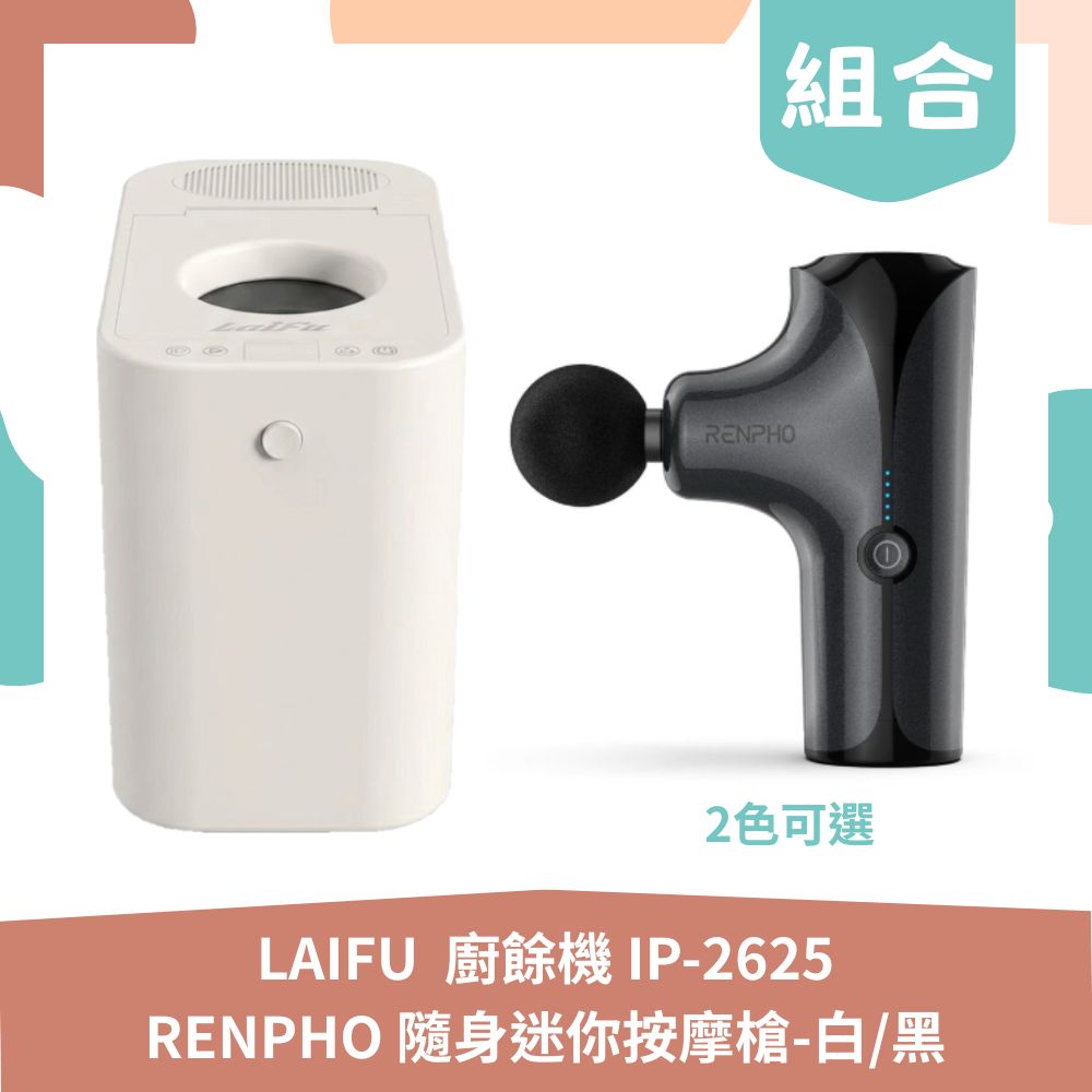 【生活組合包】LAIFU 廚餘機 IP-2625+RENPHO 隨身迷你按摩槍-白/黑 (RP-GM173) (2色可選)