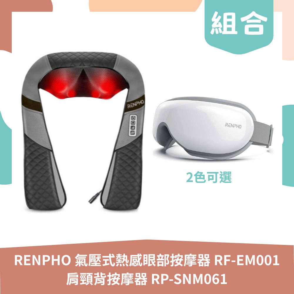 【生活組合包】RENPHO 氣壓式熱感眼部按摩器 黑/白 (RF-EM001)+ 肩頸背按摩器 (RP-SNM061)