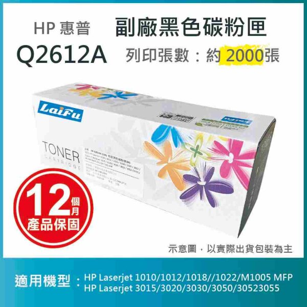 產品料號:Q2612A | 適用機型:HP Laserjet 1010/1012/1018/1020/1022 適用機型:HP Laserjet M1005 MFP/3015/3020/3030/3050/3052/3055 |